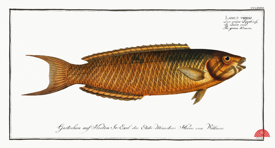 Green Wrasse Labrus viridis from Ichtylogie ou Histoire naturelle: génerale et particuliére des poissons 1785-1797 by Marcus Eliser 1723-1799