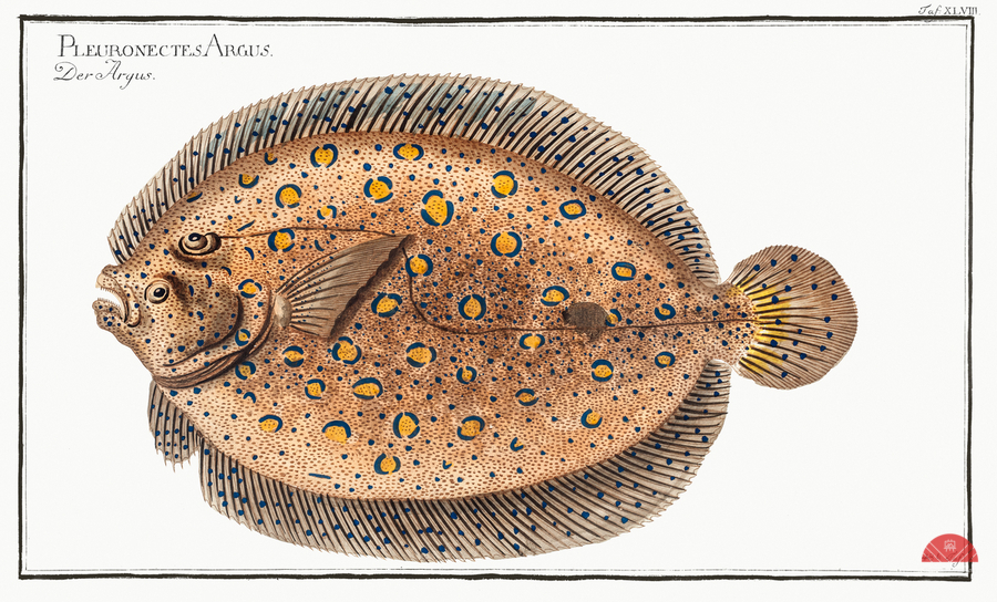 Argus-Flounder Pleuronectes Argus from Ichtylogie ou Histoire naturelle: génerale et particuliére des poissons 1785-1797 by Marcus Eliser 1723-1799