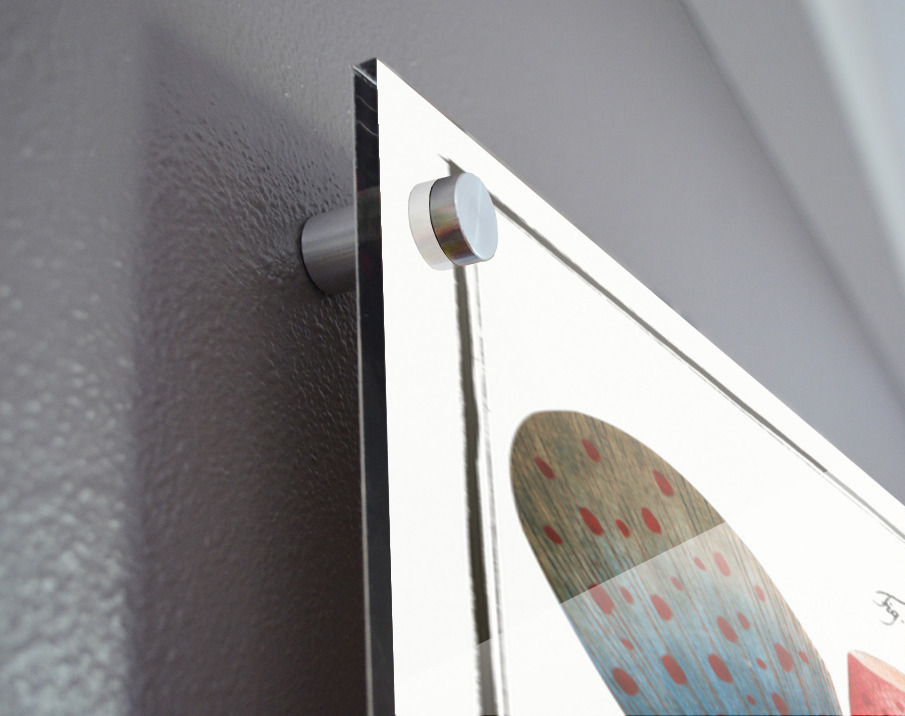 Printed to the edge - Ready to hang - provided with 4 premium polished aluminum stand off ( wall screws and mounting hardware provided ) We suggest a thicker 3/16" acrylic for any size over 42 inches to guarantee a straight acrylic, without curvature