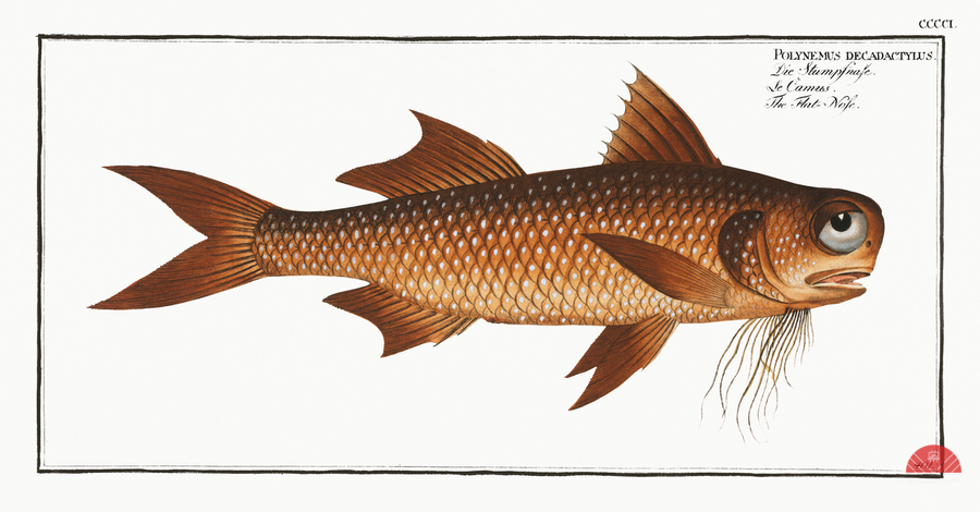 Flat-Nose Polynemus decadactylus from Ichtylogie ou Histoire naturelle: génerale et particuliére des poissons 1785-1797 by Marcus Eliser 1723-1799
