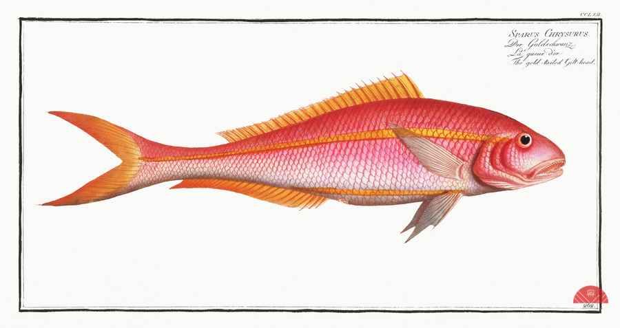 Gold-tailed Gilt-head Sparus Chrysurus from Ichtylogie ou Histoire naturelle: génerale et particuliére des poissons 1785-1797 by Marcus Eliser 1723-1799