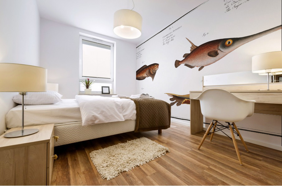 1. Snipe-Fish Centriscus Scolopax 2. Knife Fish Centriscus Scutatus 3. 4. Unctuous Sucker Cyclopterus Liparis Wood print