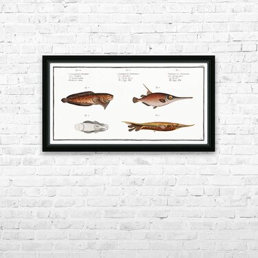 1. Snipe-Fish Centriscus Scolopax 2. Knife Fish Centriscus Scutatus 3. 4. Unctuous Sucker Cyclopterus Liparis Picture Frame Printing
