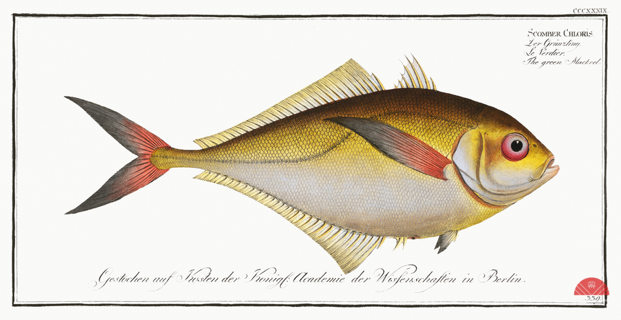 Green Mackrel Scomber Chloris from Ichtylogie ou Histoire naturelle: génerale et particuliére des poissons 1785-1797 by Marcus Eliser 1723-1799