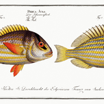 1. Pacu Perca unimaculata 2. Jub Perca Juba from Ichtylogie ou Histoire naturelle: génerale et particuliére des poissons 1785-1797 by Marcus Eliser ...[+]
