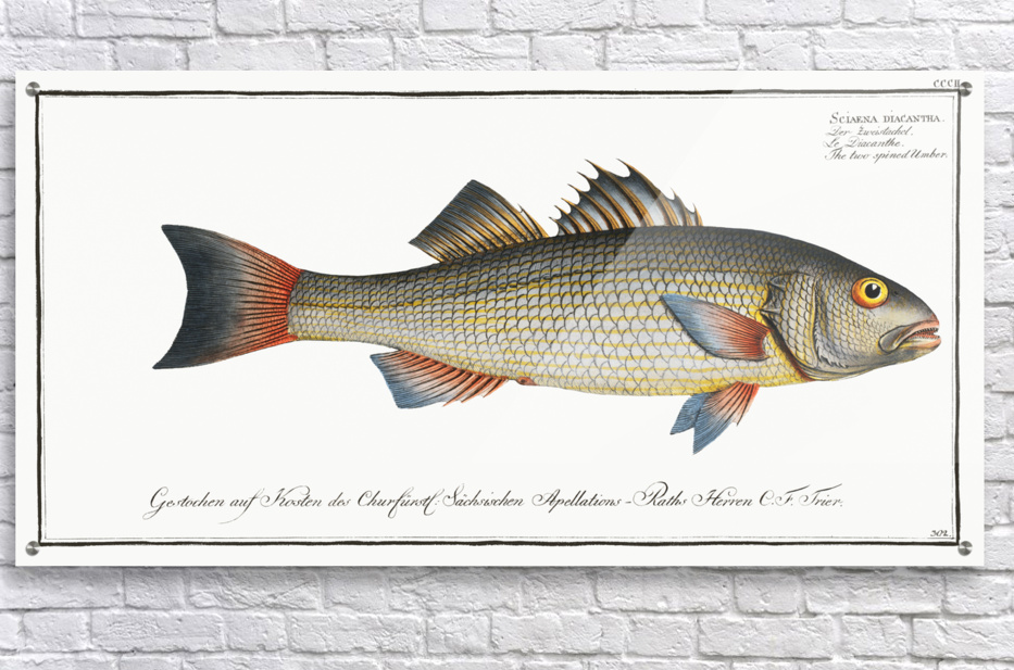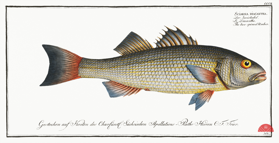 Two-spined Umber Sciaena diacantha from Ichtylogie ou Histoire naturelle: génerale et particuliére des poissons 1785-1797 by Marcus Eliser 1723-1799