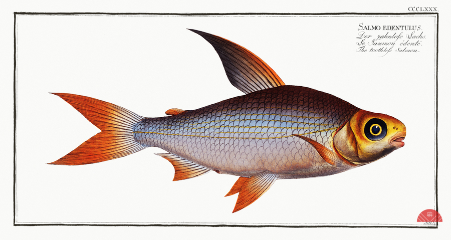 Toothless Salmon Salmo edentulus from Ichtylogie ou Histoire naturelle: génerale et particuliére des poissons 1785-1797 by Marcus Eliser 1723-1799