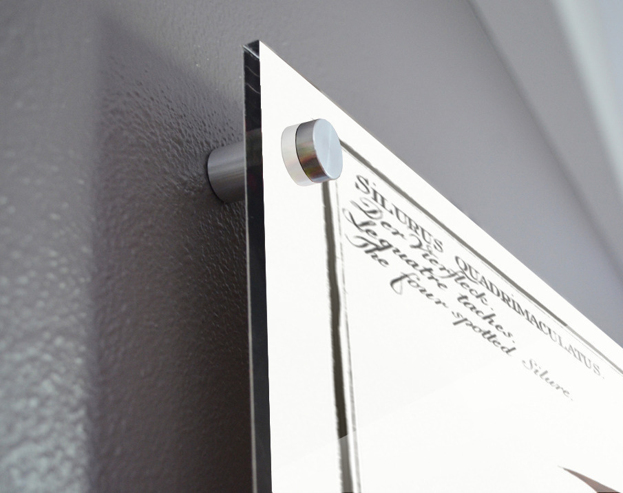 Printed to the edge - Ready to hang - provided with 4 premium polished aluminum stand off ( wall screws and mounting hardware provided ) We suggest a thicker 3/16" acrylic for any size over 42 inches to guarantee a straight acrylic, without curvature