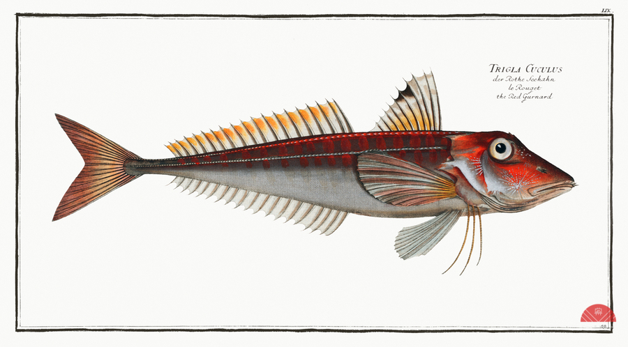 Red Gurnard Trigla Cuculus from Ichtylogie ou Histoire naturelle: génerale et particuliére des poissons 1785-1797 by Marcus Eliser 1723-1799