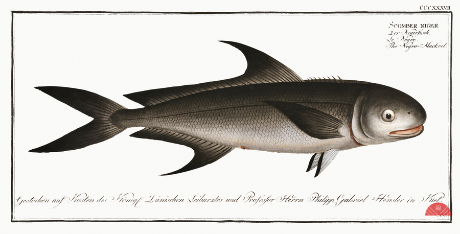 Negro-Mackrel Scomber niger from Ichtylogie ou Histoire naturelle: génerale et particuliére des poissons 1785-1797 by Marcus Eliser 1723-1799