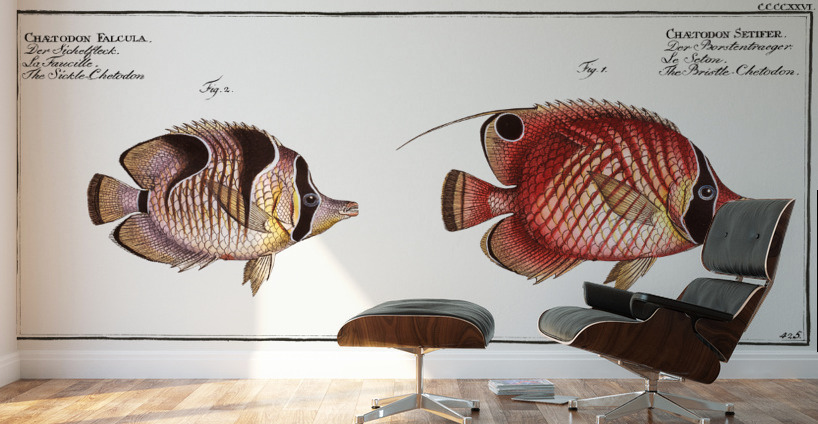 1. Bristle-Chetodon Chaetodon Setifer 2. Sickle-Chetodon Chaetodon Falcula from Ichtylogie ou Histoire naturelle: génerale et particuliére des poissons 1785-1797 by Marcus Eliser 1723-1799