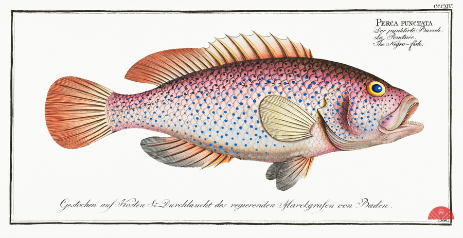 Negro-fish Perca punctata from Ichtylogie ou Histoire naturelle: génerale et particuliére des poissons 1785-1797 by Marcus Eliser 1723-1799