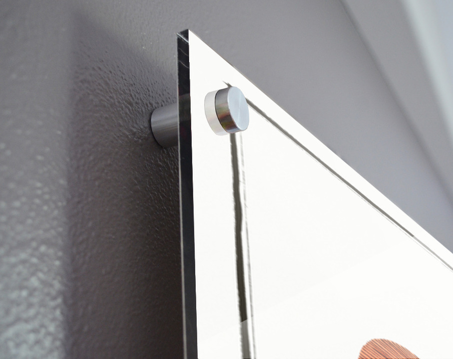 Printed to the edge - Ready to hang - provided with 4 premium polished aluminum stand off ( wall screws and mounting hardware provided ) We suggest a thicker 3/16" acrylic for any size over 42 inches to guarantee a straight acrylic, without curvature