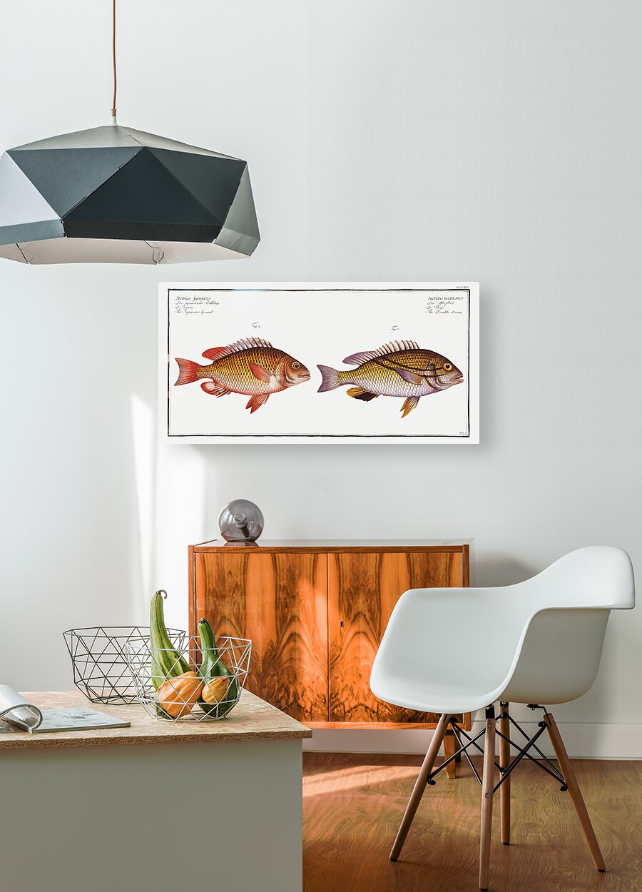Get this artwork "1. Double string Anthias bilineatus 2. Japanese Grunt Anthias japonicus" in a framed print.