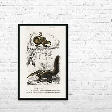Pygmy anteater Cyclopes didactylus and Giant anteater Myrmecophaga tridactyla Picture Frame Printing