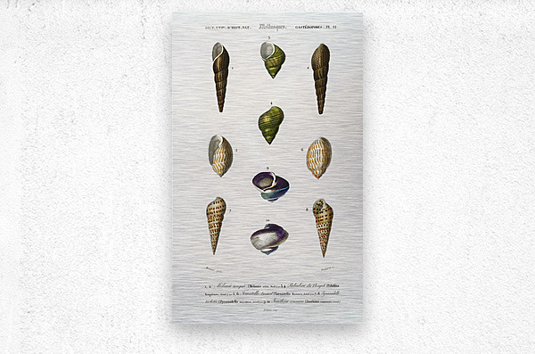 Different types of mollusks Dictionnaire Universel Dhistoire Naturelle 1892 illustrated by Charles Dessalines Orbigny 1806-1876.
