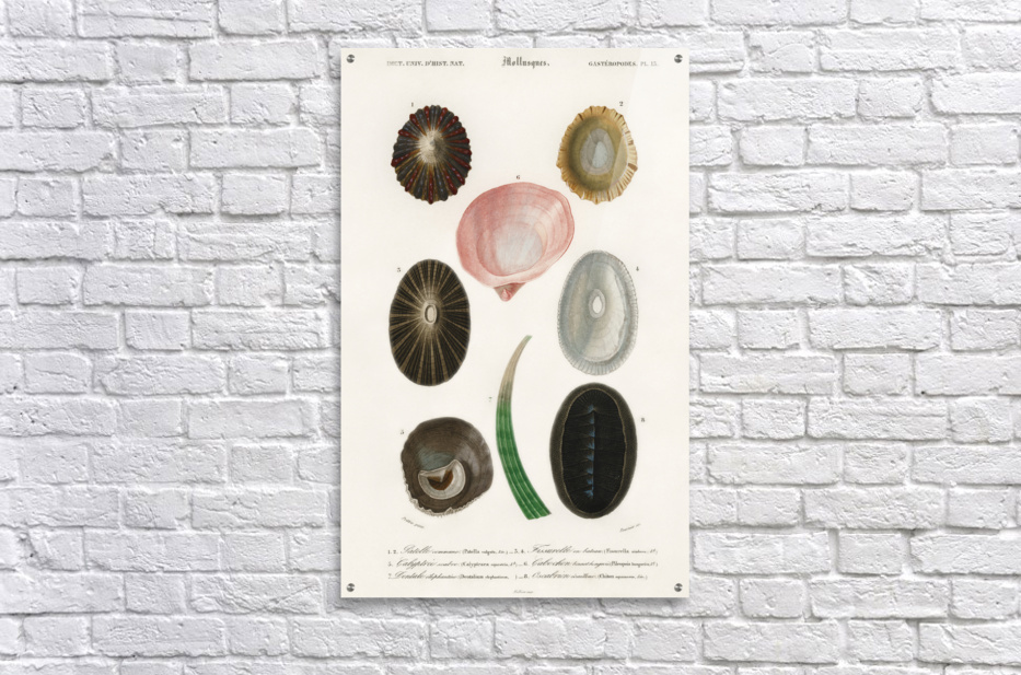 Different types of mollusks Dictionnaire Universel Dhistoire Naturelle 1892 illustrated by Charles Dessalines Orbigny 1806-1876.