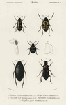 Different types of beetles Dictionnaire Universel Dhistoire Naturelle 1892 illustrated by Charles Dessalines Orbigny 1806-1876.