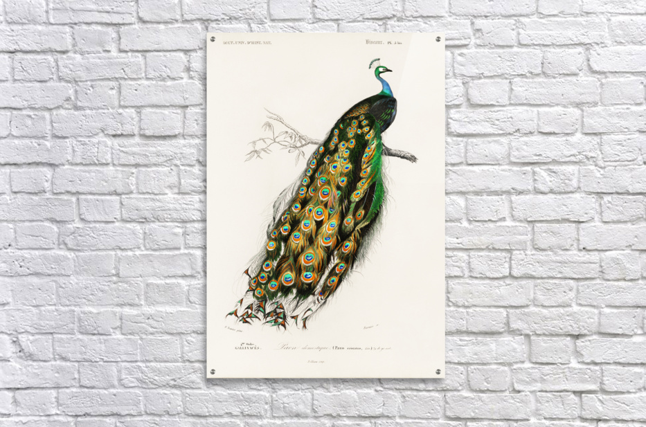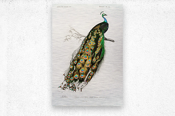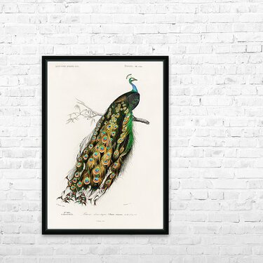 Indian peafowl Pavo Cristatus Dictionnaire Universel Dhistoire Naturelle 1892 illustrated by Charles Dessalines Orbigny 1806-1876.