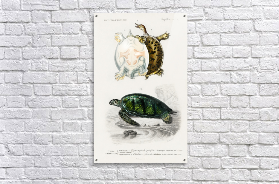 Green Sea Turtle Chelonia mydus and Spiny softshell turtle Gymnopus spiniferus Dictionnaire Universel Dhistoire Naturelle 1892 illustrated by Charles Dessalines Orbigny 1806-1876.
