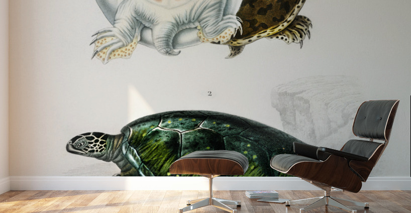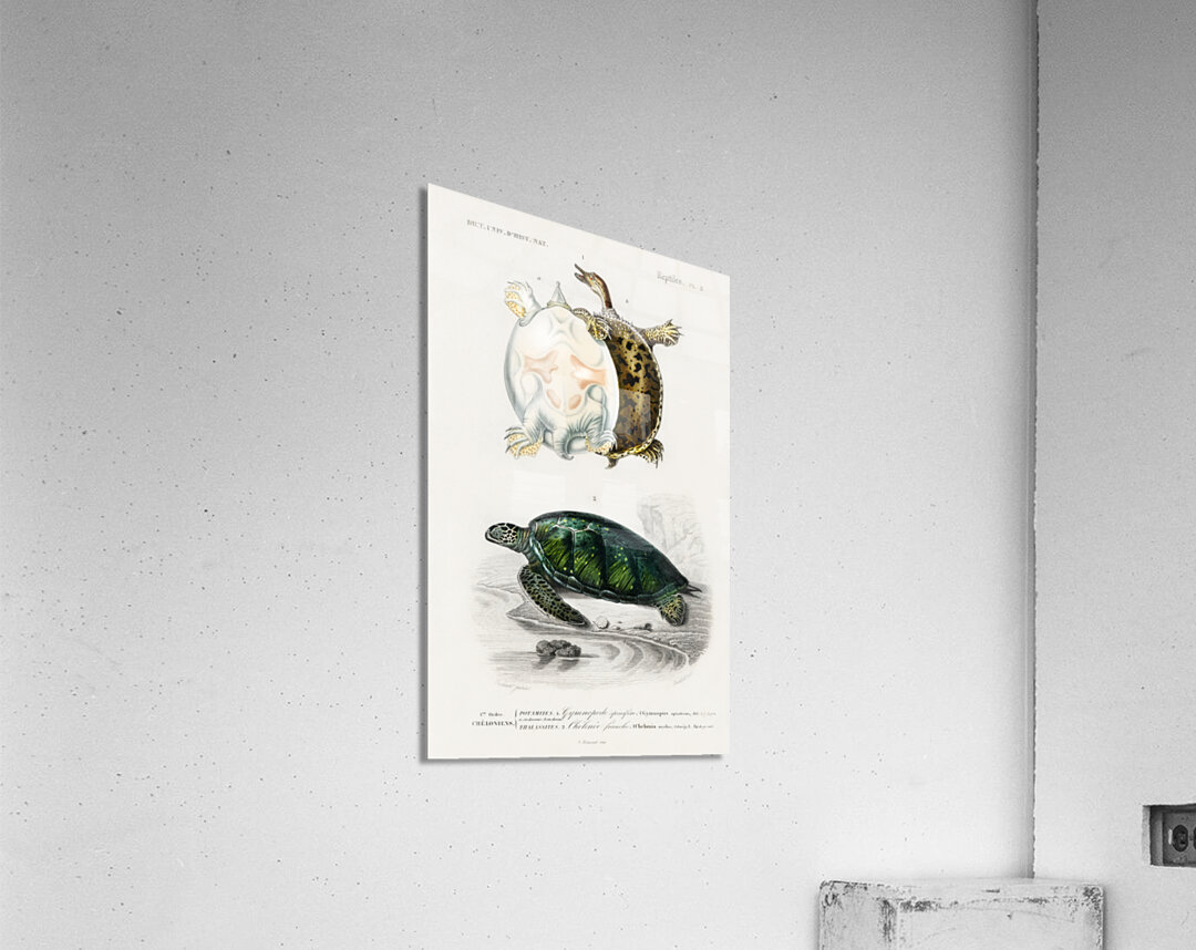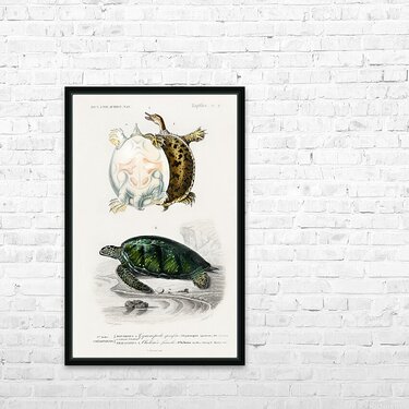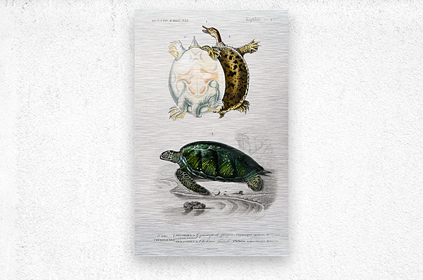 Green Sea Turtle Chelonia mydus and Spiny softshell turtle Gymnopus spiniferus Dictionnaire Universel Dhistoire Naturelle 1892 illustrated by Charles ...[+]