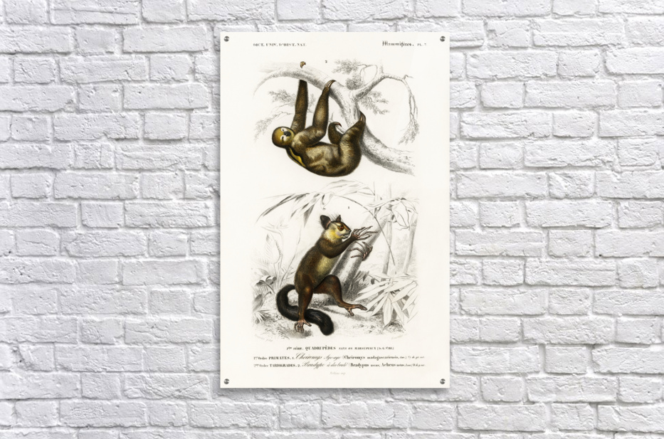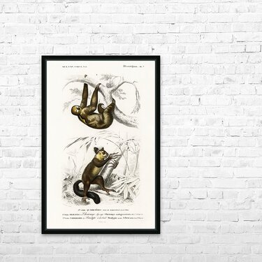 Three-toed Sloth Bradypus ustus and Aye-aye Cheiromys madagascariensis Picture Frame Printing