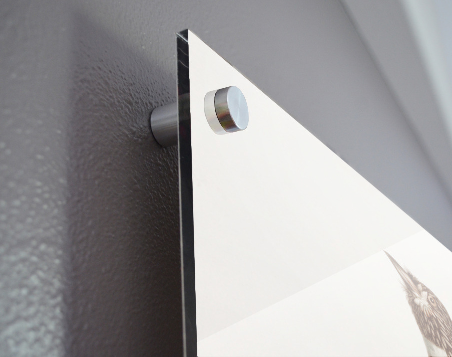 Printed to the edge - Ready to hang - provided with 4 premium polished aluminum stand off ( wall screws and mounting hardware provided ) We suggest a thicker 3/16" acrylic for any size over 42 inches to guarantee a straight acrylic, without curvature