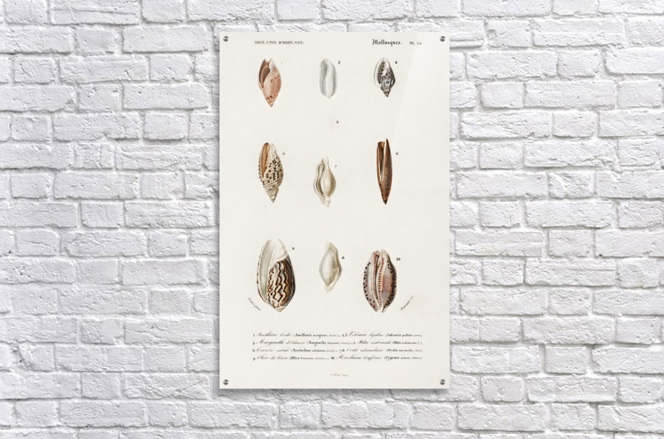 Different types of mollusks Dictionnaire Universel Dhistoire Naturelle 1892 illustrated by Charles Dessalines Orbigny 1806-1876.