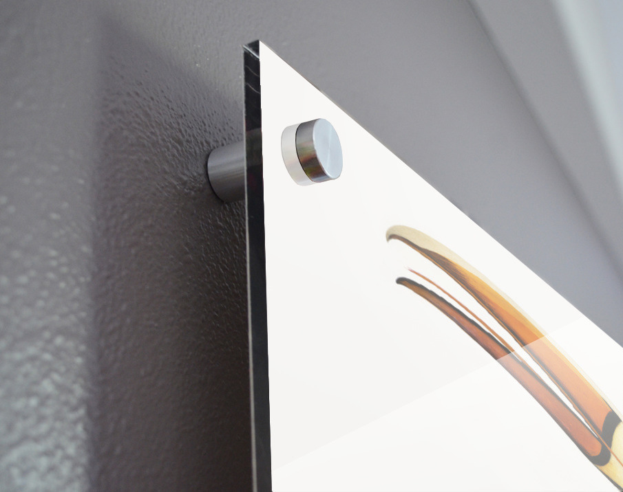 Printed to the edge - Ready to hang - provided with 4 premium polished aluminum stand off ( wall screws and mounting hardware provided ) We suggest a thicker 3/16" acrylic for any size over 42 inches to guarantee a straight acrylic, without curvature