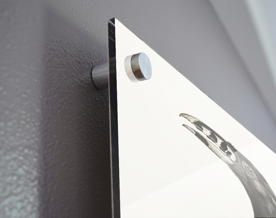 Printed to the edge - Ready to hang - provided with 4 premium polished aluminum stand off ( wall screws and mounting hardware provided ) We suggest a thicker 3/16" acrylic for any size over 42 inches to guarantee a straight acrylic, without curvature