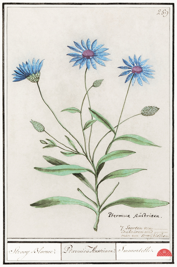 BLUE STRAWFLOWER IN VINTAGE STYLE