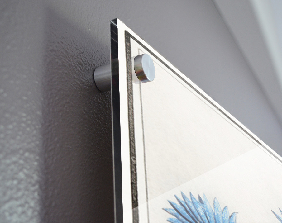 Printed to the edge - Ready to hang - provided with 4 premium polished aluminum stand off ( wall screws and mounting hardware provided ) We suggest a thicker 3/16" acrylic for any size over 42 inches to guarantee a straight acrylic, without curvature