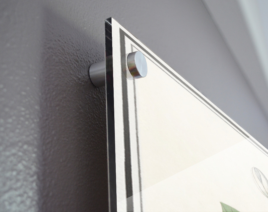 Printed to the edge - Ready to hang - provided with 4 premium polished aluminum stand off ( wall screws and mounting hardware provided ) We suggest a thicker 3/16" acrylic for any size over 42 inches to guarantee a straight acrylic, without curvature