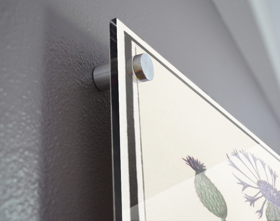 Printed to the edge - Ready to hang - provided with 4 premium polished aluminum stand off ( wall screws and mounting hardware provided ) We suggest a thicker 3/16" acrylic for any size over 42 inches to guarantee a straight acrylic, without curvature