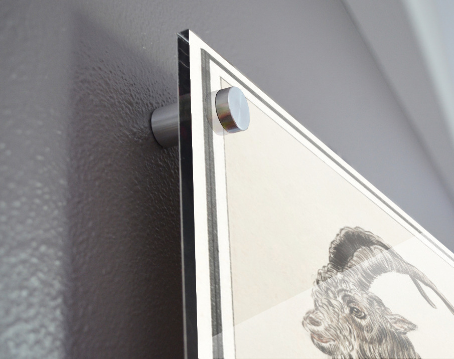 Printed to the edge - Ready to hang - provided with 4 premium polished aluminum stand off ( wall screws and mounting hardware provided ) We suggest a thicker 3/16" acrylic for any size over 42 inches to guarantee a straight acrylic, without curvature