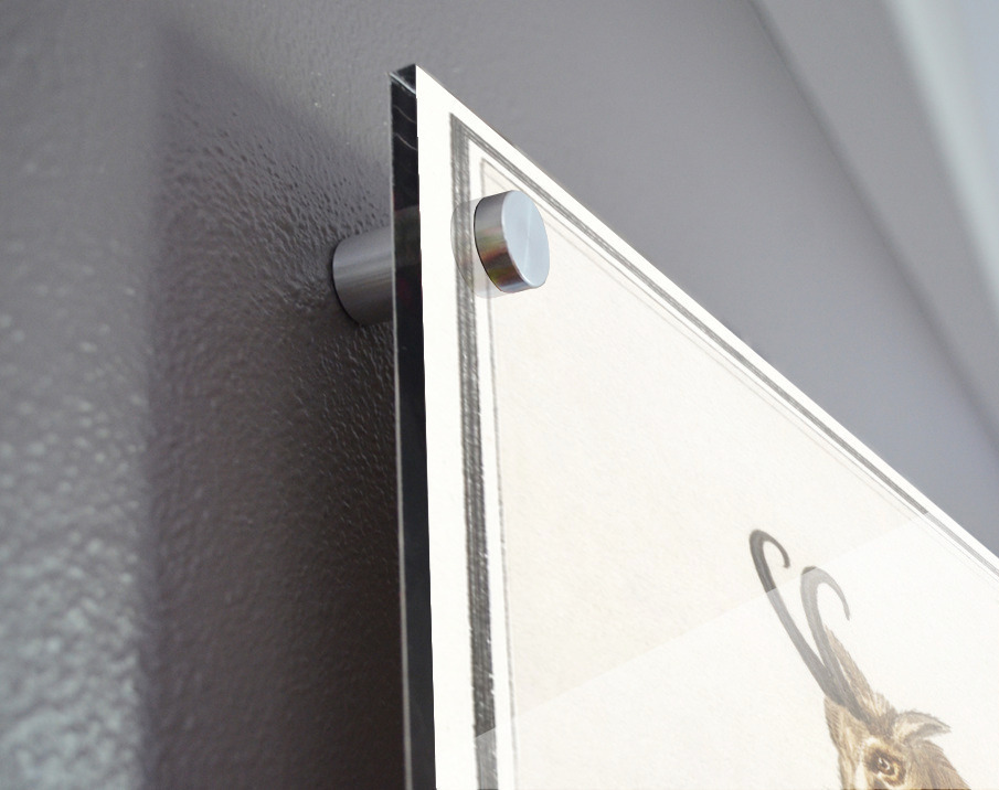 Printed to the edge - Ready to hang - provided with 4 premium polished aluminum stand off ( wall screws and mounting hardware provided ) We suggest a thicker 3/16" acrylic for any size over 42 inches to guarantee a straight acrylic, without curvature