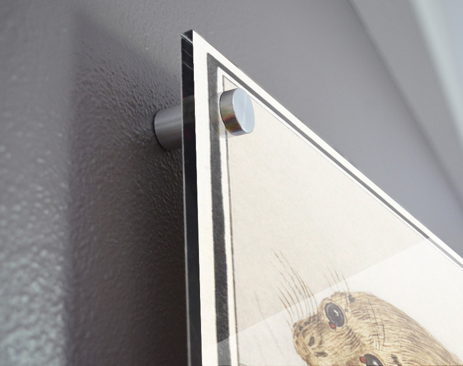 Printed to the edge - Ready to hang - provided with 4 premium polished aluminum stand off ( wall screws and mounting hardware provided ) We suggest a thicker 3/16" acrylic for any size over 42 inches to guarantee a straight acrylic, without curvature