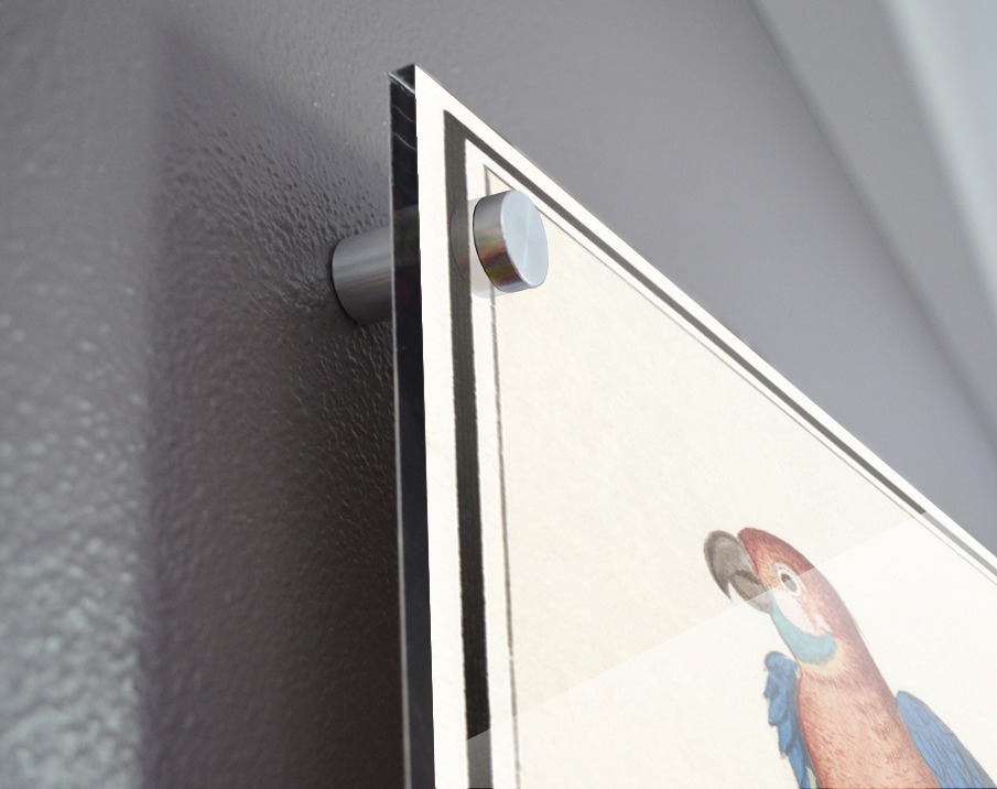 Printed to the edge - Ready to hang - provided with 4 premium polished aluminum stand off ( wall screws and mounting hardware provided ) We suggest a thicker 3/16" acrylic for any size over 42 inches to guarantee a straight acrylic, without curvature