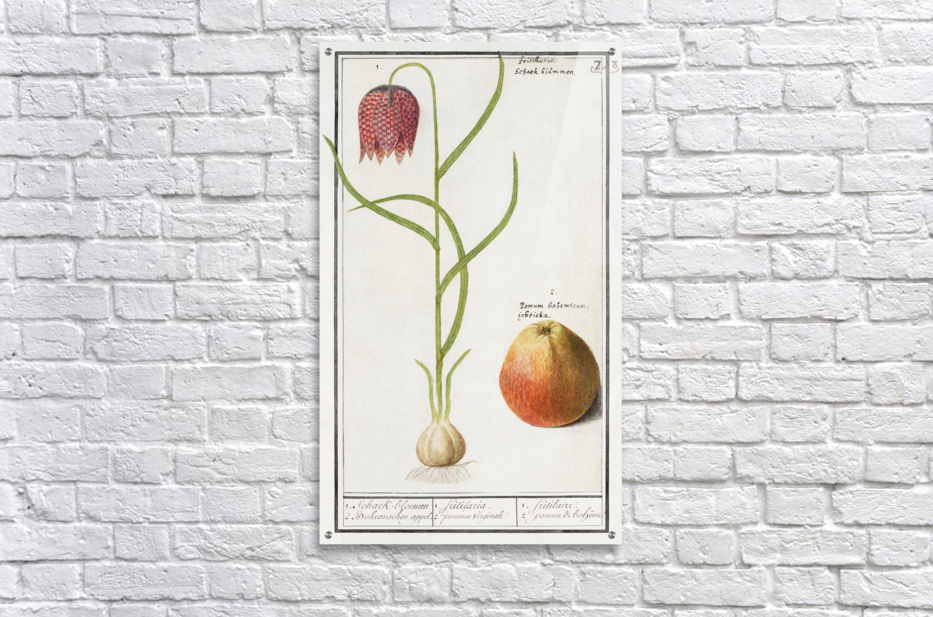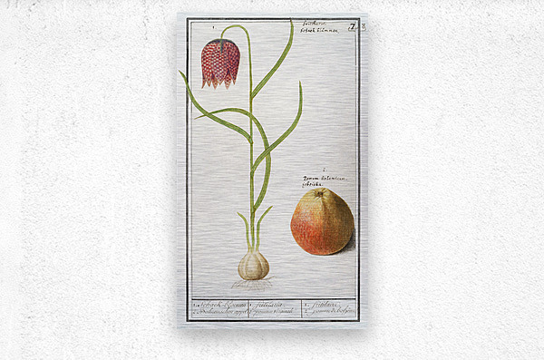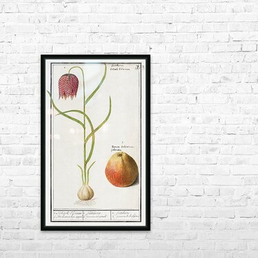 Snake & #39s head fritillary Fritillaria meleagris and an apple 1596–1610 by Anselmus Boëtius de Boodt.