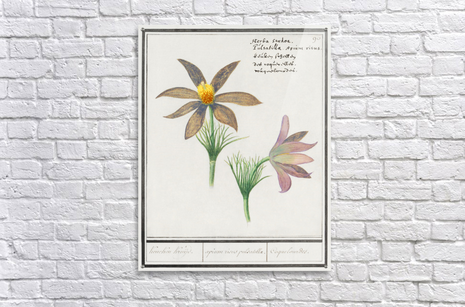 Get this artwork "Pasque flower in vintage style" in a framed print.