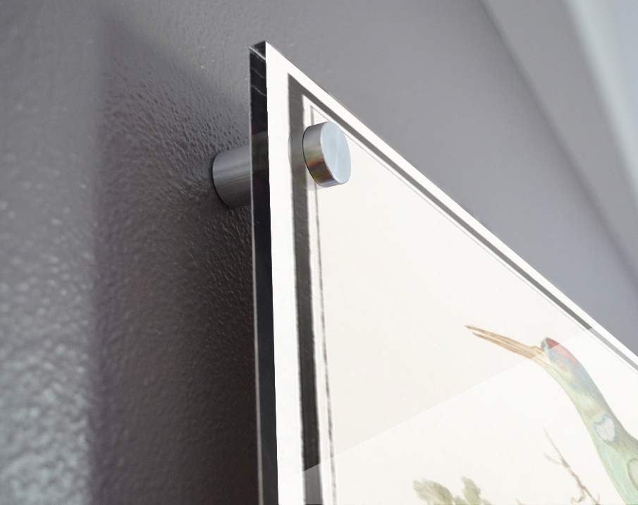 Printed to the edge - Ready to hang - provided with 4 premium polished aluminum stand off ( wall screws and mounting hardware provided ) We suggest a thicker 3/16" acrylic for any size over 42 inches to guarantee a straight acrylic, without curvature