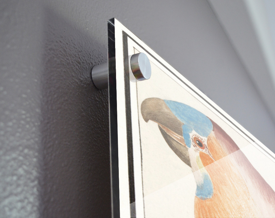 Printed to the edge - Ready to hang - provided with 4 premium polished aluminum stand off ( wall screws and mounting hardware provided ) We suggest a thicker 3/16" acrylic for any size over 42 inches to guarantee a straight acrylic, without curvature