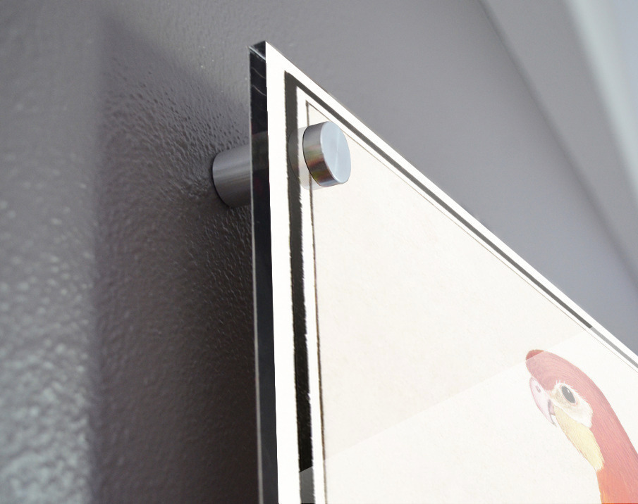 Printed to the edge - Ready to hang - provided with 4 premium polished aluminum stand off ( wall screws and mounting hardware provided ) We suggest a thicker 3/16" acrylic for any size over 42 inches to guarantee a straight acrylic, without curvature
