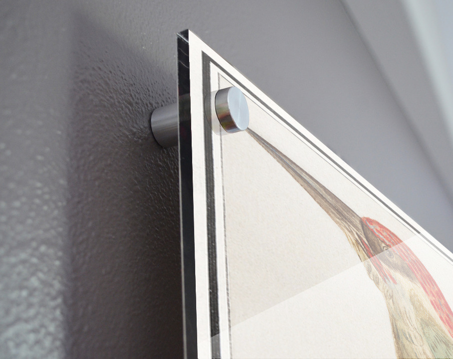 Printed to the edge - Ready to hang - provided with 4 premium polished aluminum stand off ( wall screws and mounting hardware provided ) We suggest a thicker 3/16" acrylic for any size over 42 inches to guarantee a straight acrylic, without curvature