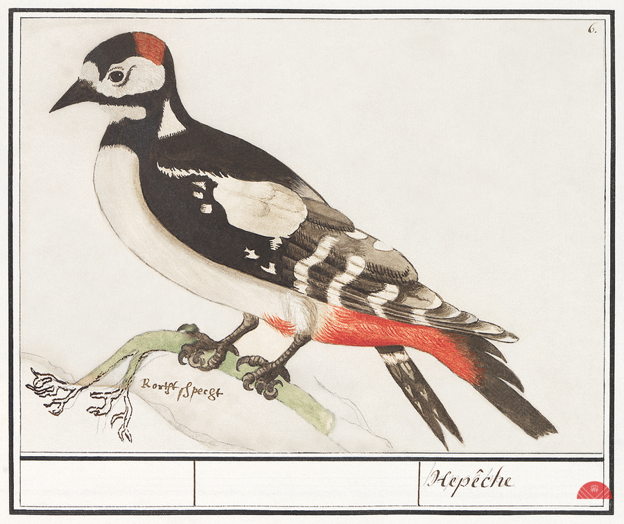The great spotted woodpecker Dendrocopos major 1596–1610 by Anselmus Boëtius de Boodt.