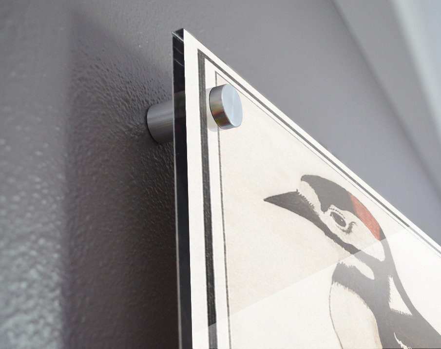 Printed to the edge - Ready to hang - provided with 4 premium polished aluminum stand off ( wall screws and mounting hardware provided ) We suggest a thicker 3/16" acrylic for any size over 42 inches to guarantee a straight acrylic, without curvature