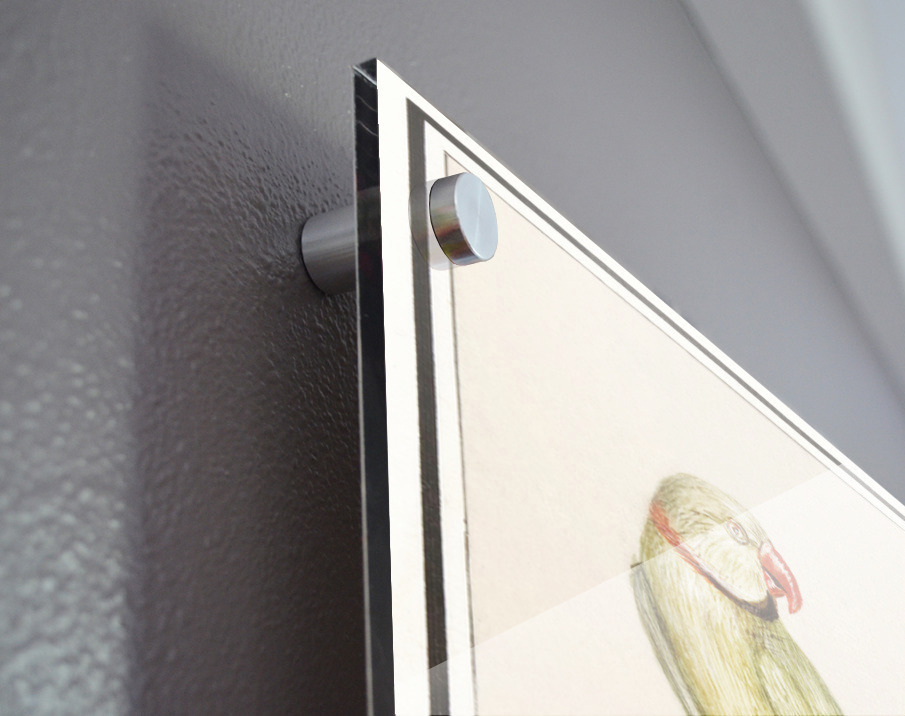 Printed to the edge - Ready to hang - provided with 4 premium polished aluminum stand off ( wall screws and mounting hardware provided ) We suggest a thicker 3/16" acrylic for any size over 42 inches to guarantee a straight acrylic, without curvature