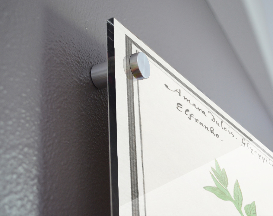 Printed to the edge - Ready to hang - provided with 4 premium polished aluminum stand off ( wall screws and mounting hardware provided ) We suggest a thicker 3/16" acrylic for any size over 42 inches to guarantee a straight acrylic, without curvature