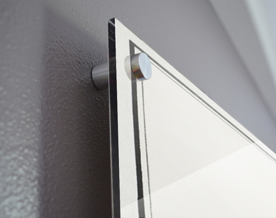Printed to the edge - Ready to hang - provided with 4 premium polished aluminum stand off ( wall screws and mounting hardware provided ) We suggest a thicker 3/16" acrylic for any size over 42 inches to guarantee a straight acrylic, without curvature