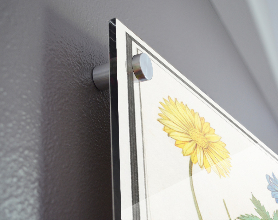 Printed to the edge - Ready to hang - provided with 4 premium polished aluminum stand off ( wall screws and mounting hardware provided ) We suggest a thicker 3/16" acrylic for any size over 42 inches to guarantee a straight acrylic, without curvature